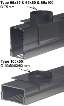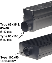For an easy connection to the sewer or gravel drain. The side-outlet of type 100x50 can also be used as an additional stopend!